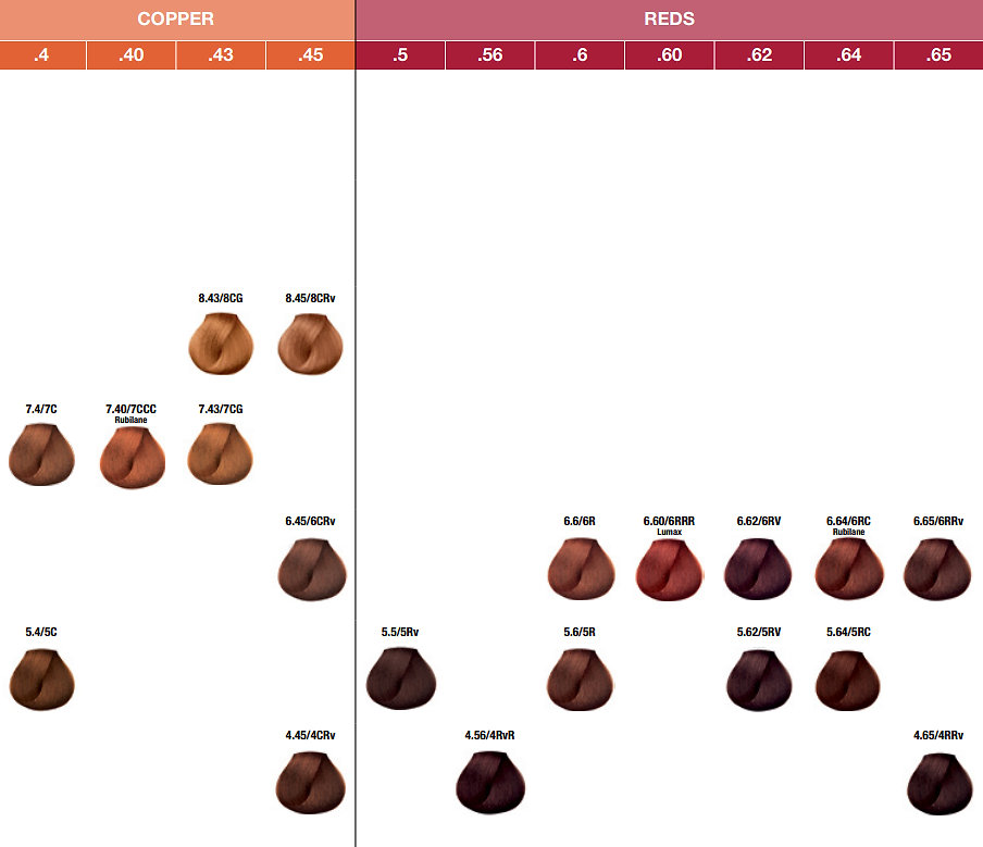 The shades are formulated with the Ionene G™ and Incell™ complex, but also feature different technologies: Carmilane™, DM5, Lumax and Rubilane™. These shades can’t be mixed, be sure to use them in pure form! (For example, Carmilane™ C5.60 can be mixed with Carmilane™ C6.66. However, Carmilane™ C5.60 cannot be mixed with Lumax 6.60.)