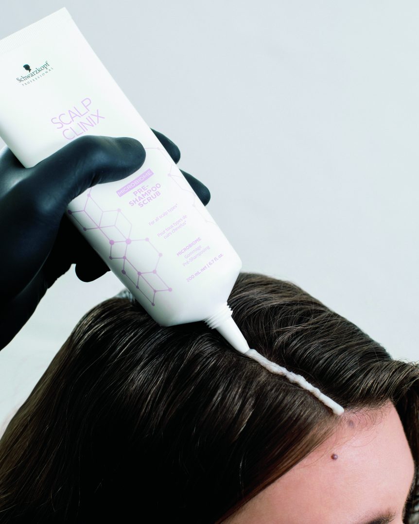 Pre-shampoo exfoliating care for the scalp.