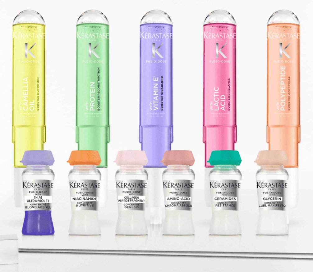 Fusio-Dose transforms your hair in less than 5 minutes with a custom-blended blend. The combination of booster & concentré offers 30 different combinations that address 2 hair needs in 1 application! Concentrated treatments Fusio-Dose Concentré target the primary hair need identified by your hairdresser after diagnosis, while boosters Fusio-Dose Booster target the secondary hair need your client is seeking, so you can have the best of both worlds.
